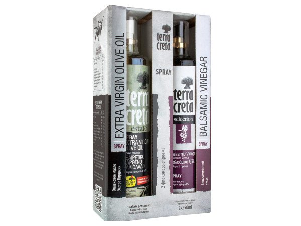 250 ml Extra Virgin Olive Oil and 250 ml Cretan Balsamic Vinegar Spray Bottles.